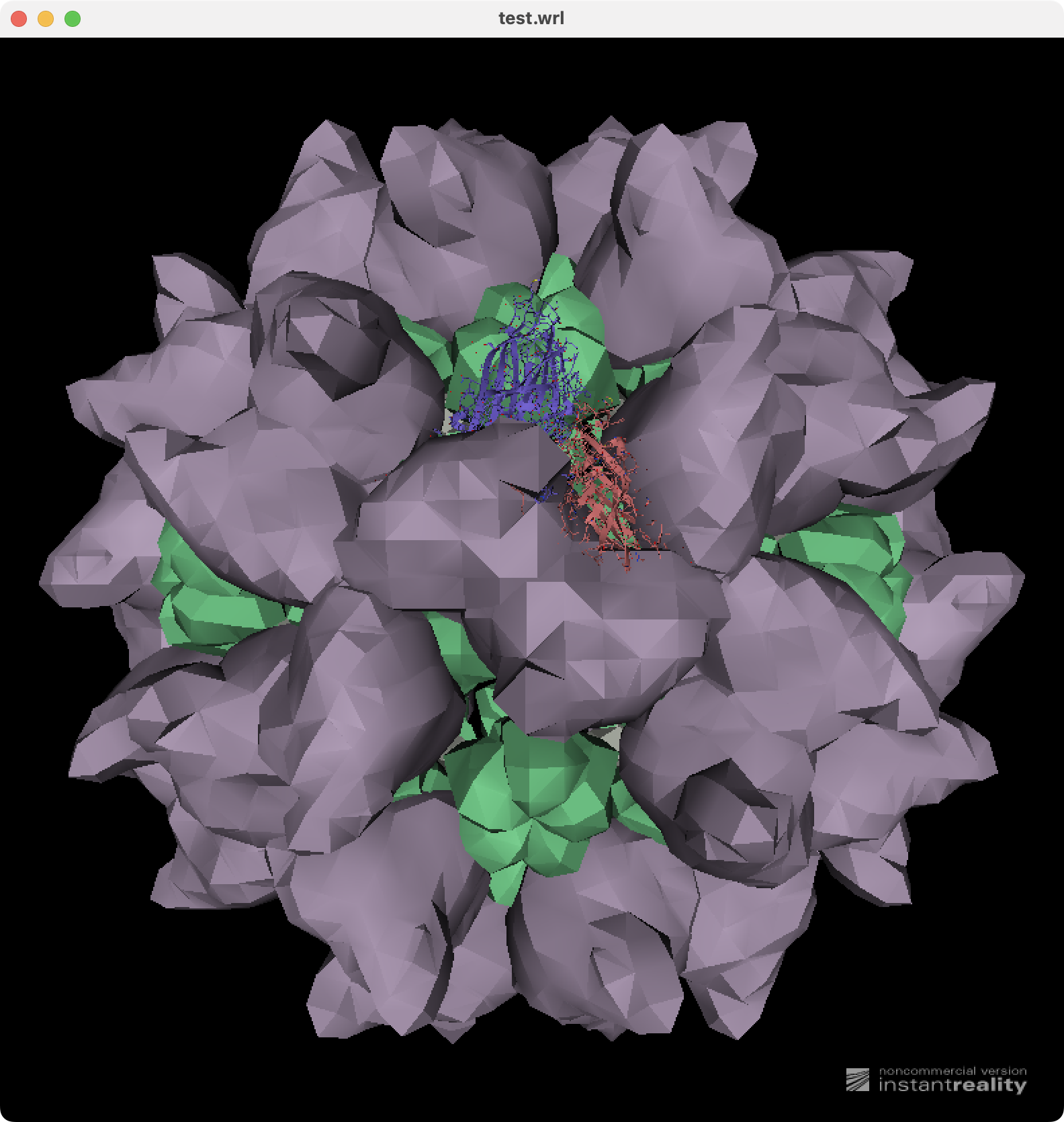 Image of ChimeraX 2bbv virus capsid VRML shown by InstantPlayer.