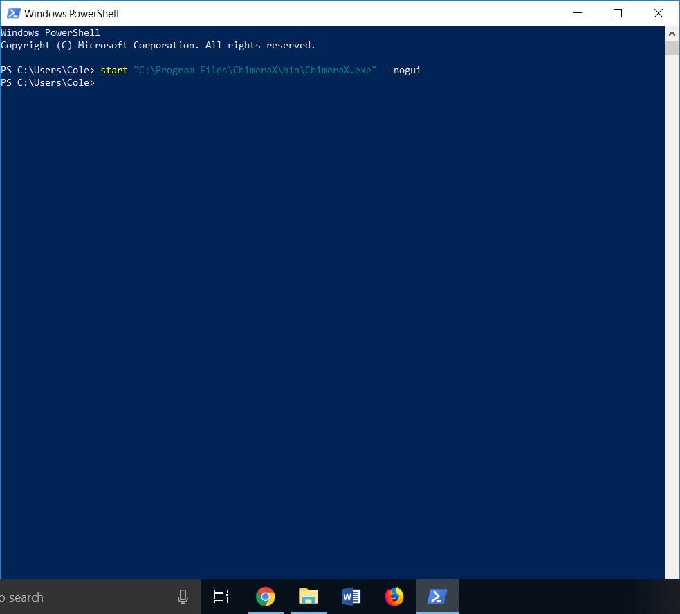 Launching from the PowerShell with the nogui argument doesn't prompt me to add any commands. ChimeraX will flash up for about a second in the task manager then disappears and isn't running anywhere in the task manager. Also I cleared all the files I thought were associated with chimera files from the %temp %, temp, local data temp, and prefig folders. Then I ran a disk cleanup. I searched the regedit but didn't see any indications of ChimeraX. Thanks, Cole ________________________________ From: ChimeraX <ChimeraX-bugs-admin@cgl.ucsf.edu> Sent: Thursday, June 28, 2018 11:43:00 AM To: gregc@cgl.ucsf.edu; Martin, Coleman Cc: chimera-programmers@cgl.ucsf.edu Subject: Re: [ChimeraX] #1176: ChimeraX not opening #1176: ChimeraX not opening ---------------------------------------+---------------------- Reporter: coleman.martin@… | Owner: gregc Type: defect | Status: feedback Priority: normal | Milestone: Component: Platform | Version: Resolution: | Keywords: Blocked By: | Blocking: Notify when closed: | Platform: all Project: ChimeraX | ---------------------------------------+---------------------- Comment (by goddard@…): {{{ Seem like the problem is likely to be with ChimeraX cached settings, tool database, ... which could be fixed by deleting the ChimeraX cache files. I'm not sure where those are on Windows. }}} -- Ticket URL: <https://plato.cgl.ucsf.edu/trac/ChimeraX/ticket/1176#comment:6> ChimeraX <http://www.rbvi.ucsf.edu/chimerax/> ChimeraX Issue Tracker