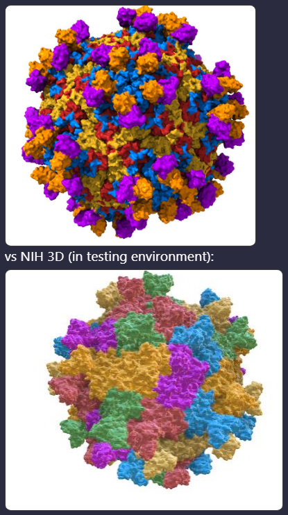 Hey all! I just stumbled into this one today. I was looking at PDB 6WDT and there is an inconsistency between how the preset comes out in ChimeraX vs NIH 3D: ChimeraX: [cid:image001.png@01DABD93.19087DC0] The ChimeraX preset is how I would expect it to look with each chain of the sym units a different color. But when this comes out of NIH 3D using our current prod and our most up-to-date testing environment it looks like the below where each sym unit seems to be colored differently instead of by-chain. I checked with Phil and this isn't what we would expect, so was hoping that Eric could look into it? Thanks! Kristen