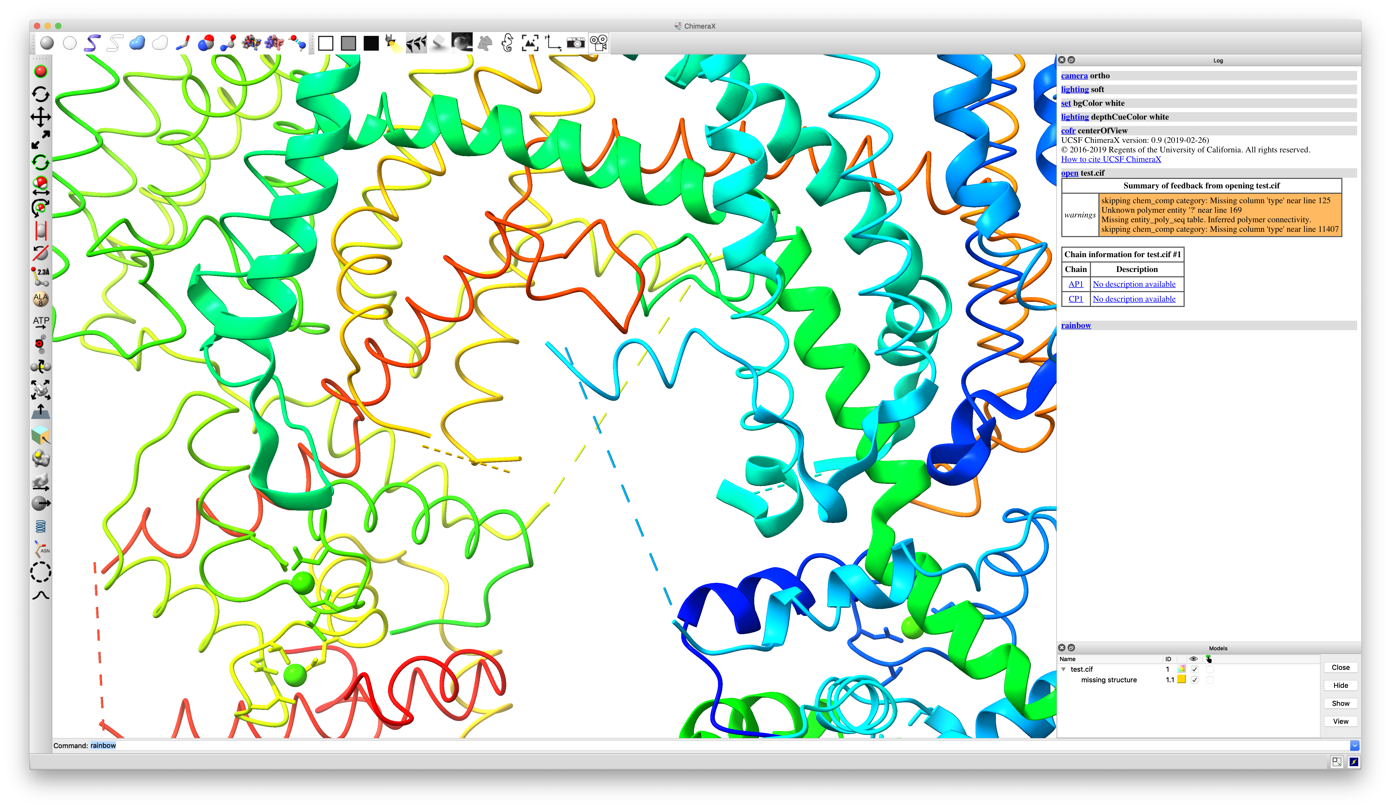 About a month ago I made pseudobonds to hidden atoms visible. Now the trouble is the missing segment pseudobonds end at a point in space instead of on the cartoon since the cartoon does not pass exactly through the hidden backbone atoms.