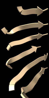 111111-222222-333333 N-CA-C-N-CA-C-N-CA-C sssssssSSSSSSS 222222There are three residues R1, R2 and R3. Each residue (and its ribbon) spans the three backbone atoms N, CA and C. The ribbon spline is calculated from CA-CA ("s" between R1 and R2 and "S" between R2 and R3). The ribbon for each residue is composed of two parts. In this example, the ribbon for R2 is the "back" half of spline "s" and the front half of spline "S".