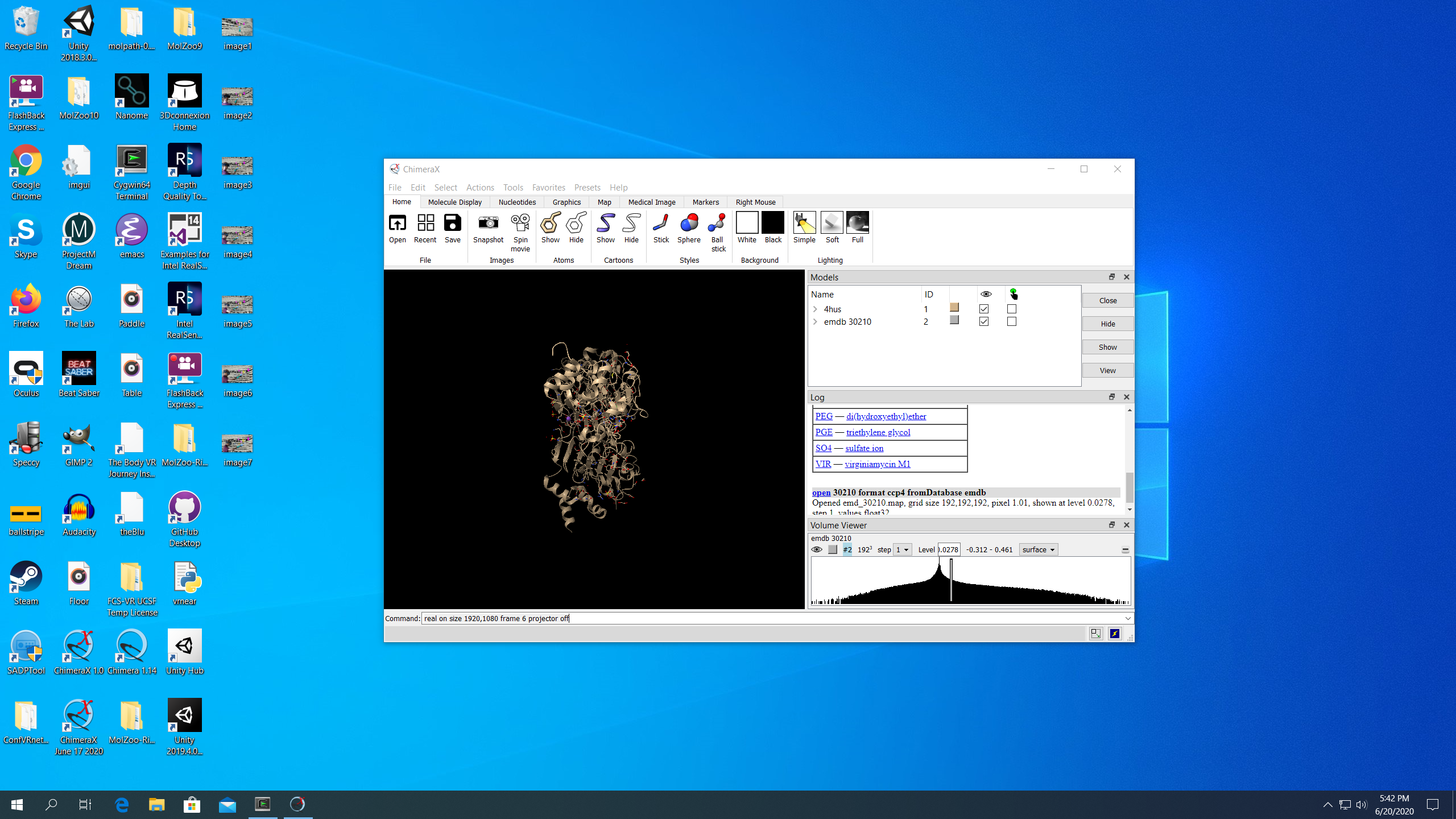 The following bug report has been submitted: Platform: Windows-10-10.0.18362 ChimeraX Version: 1.0 (2020-06-04 23:15:07 UTC) Description On Windows 10 with display scaling set to 200% on a 2560x1440 display, half the GUI elements are half size and half are full size. For instance the command line text is half size, model panel text is full size, toolbar icon and tab name text is half size, Window menus are full size, Volume Viewer controls above histogram are mostly half size. Log: UCSF ChimeraX version: 1.0 (2020-06-04) © 2016-2020 Regents of the University of California. All rights reserved. How to cite UCSF ChimeraX > open 4hus format mmcif fromDatabase pdb 4hus title: Crystal structure of streptogramin group A antibiotic acetyltransferase VatA from Staphylococcus aureus in complex with virginiamycin M1 [more info...] Chain information for 4hus #1 --- Chain | Description A B C | Virginiamycin A acetyltransferase Non-standard residues in 4hus #1 --- CL — chloride ion EDO — 1,2-ethanediol (ethylene glycol) NA — sodium ion PEG — di(hydroxyethyl)ether PGE — triethylene glycol SO4 — sulfate ion VIR — virginiamycin M1 > open 30210 format ccp4 fromDatabase emdb Opened emd_30210.map, grid size 192,192,192, pixel 1.01, shown at level 0.0278, step 1, values float32 OpenGL version: 3.3.0 NVIDIA 442.19 OpenGL renderer: GeForce GTX 1080 Ti/PCIe/SSE2 OpenGL vendor: NVIDIA Corporation Manufacturer: Gigabyte Technology Co., Ltd. Model: Z270X-Gaming K7 OS: Microsoft Windows 10 Home (Build 18362) Memory: 17,129,693,184 MaxProcessMemory: 137,438,953,344 CPU: 8 Intel(R) Core(TM) i7-7700K CPU @ 4.20GHz" PyQt version: 5.12.3 Compiled Qt version: 5.12.4 Runtime Qt version: 5.12.8 File attachment: Screenshot (1).png