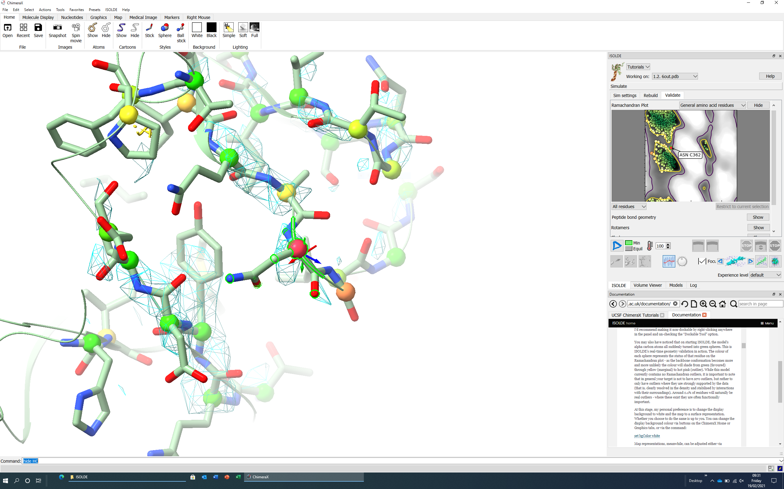 Opened https://www.rbvi.ucsf.edu/chimerax/tutorials.html