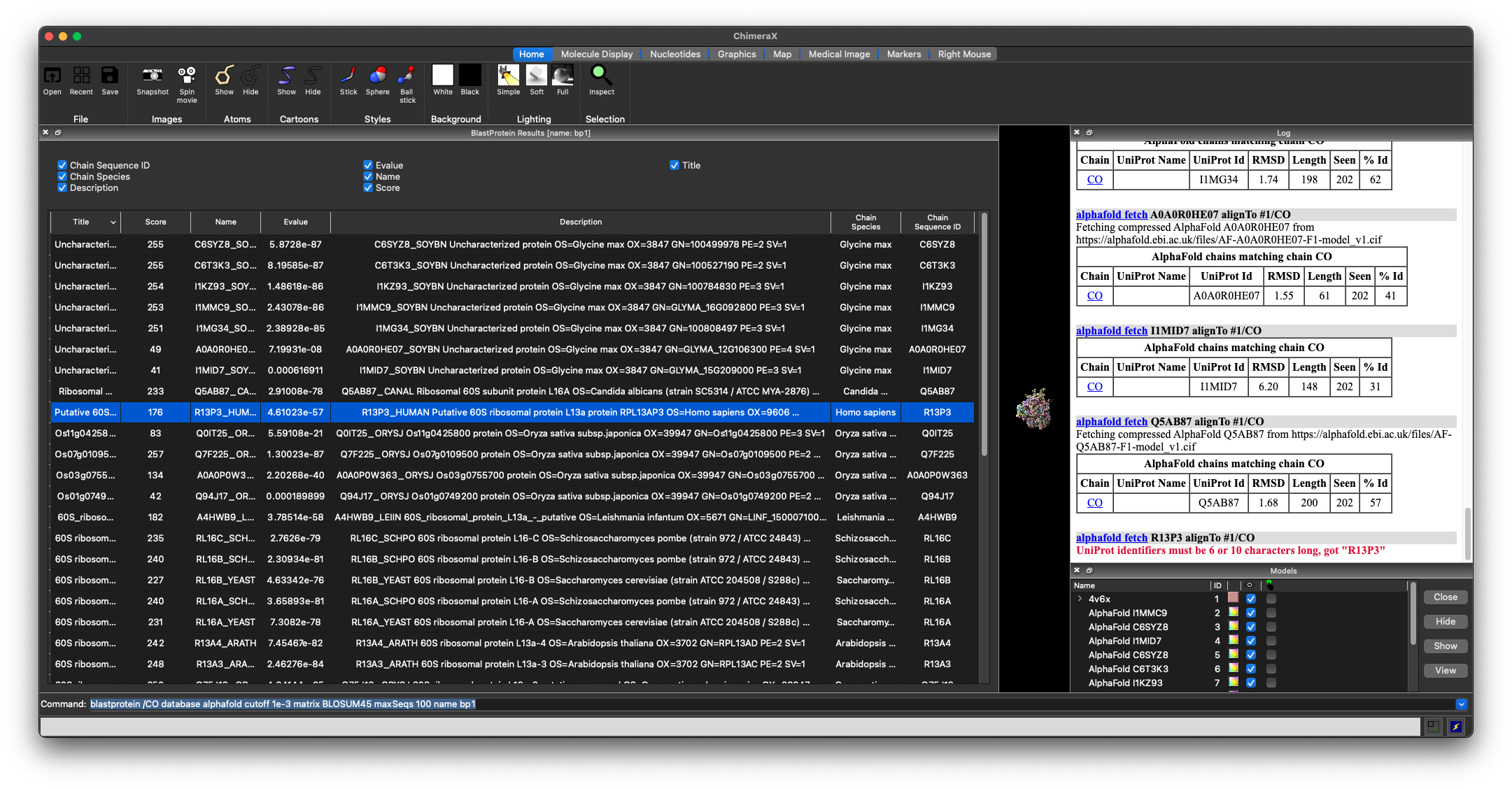 Actually I changed the "alphafold fetch" command a few days ago so you can give it a uniprot name. So you could use "alphafold fetch R13P3_HUMAN".