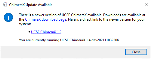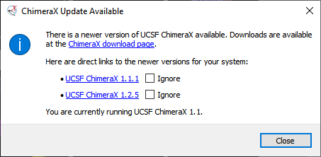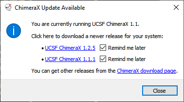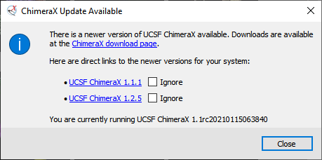 I agree with Elaine that the update dialog only needs to show the most recent ChimeraX available.