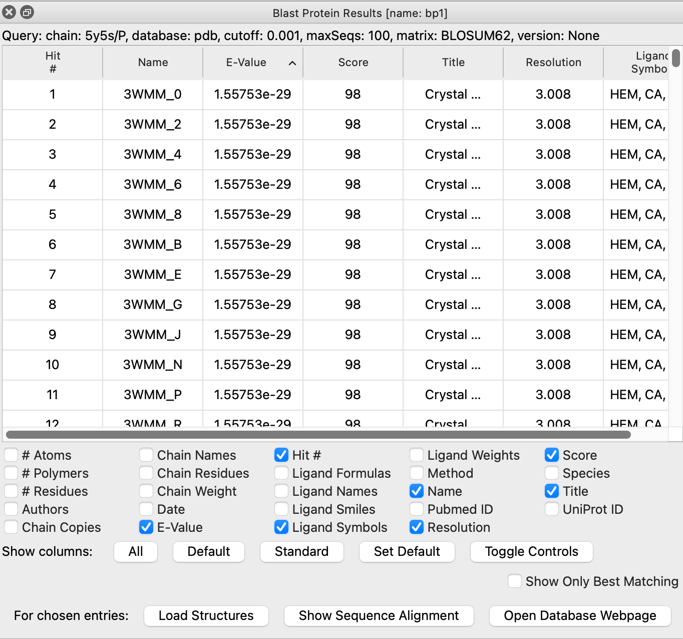 Would like "List only best-matching chain per PDB entry" option like Chimera Blastprotein had. Currently all hits per PDB entry are given, for example:
