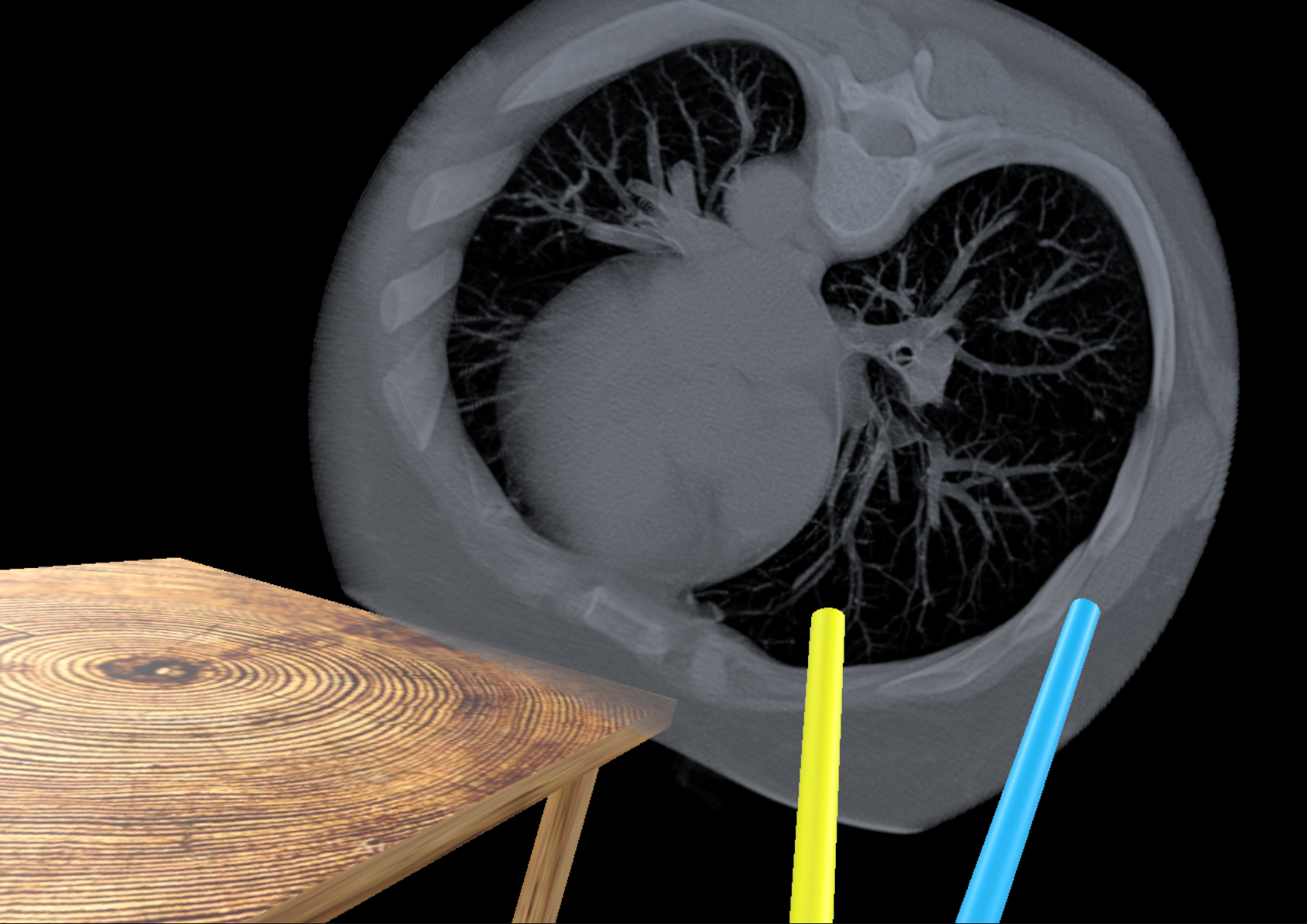 Unity Quest 2 standalone app showing 16-plane DICOM of chest CT scan