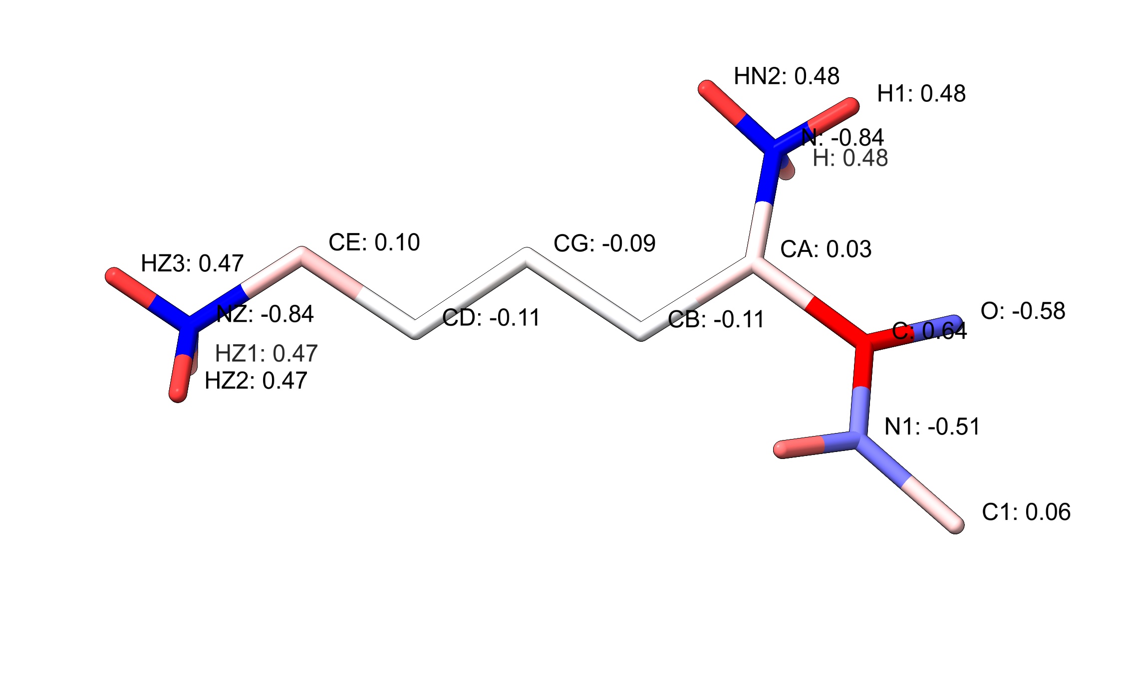 AM1BCC charges on lysine O-acetamide applied using "coulombic" command